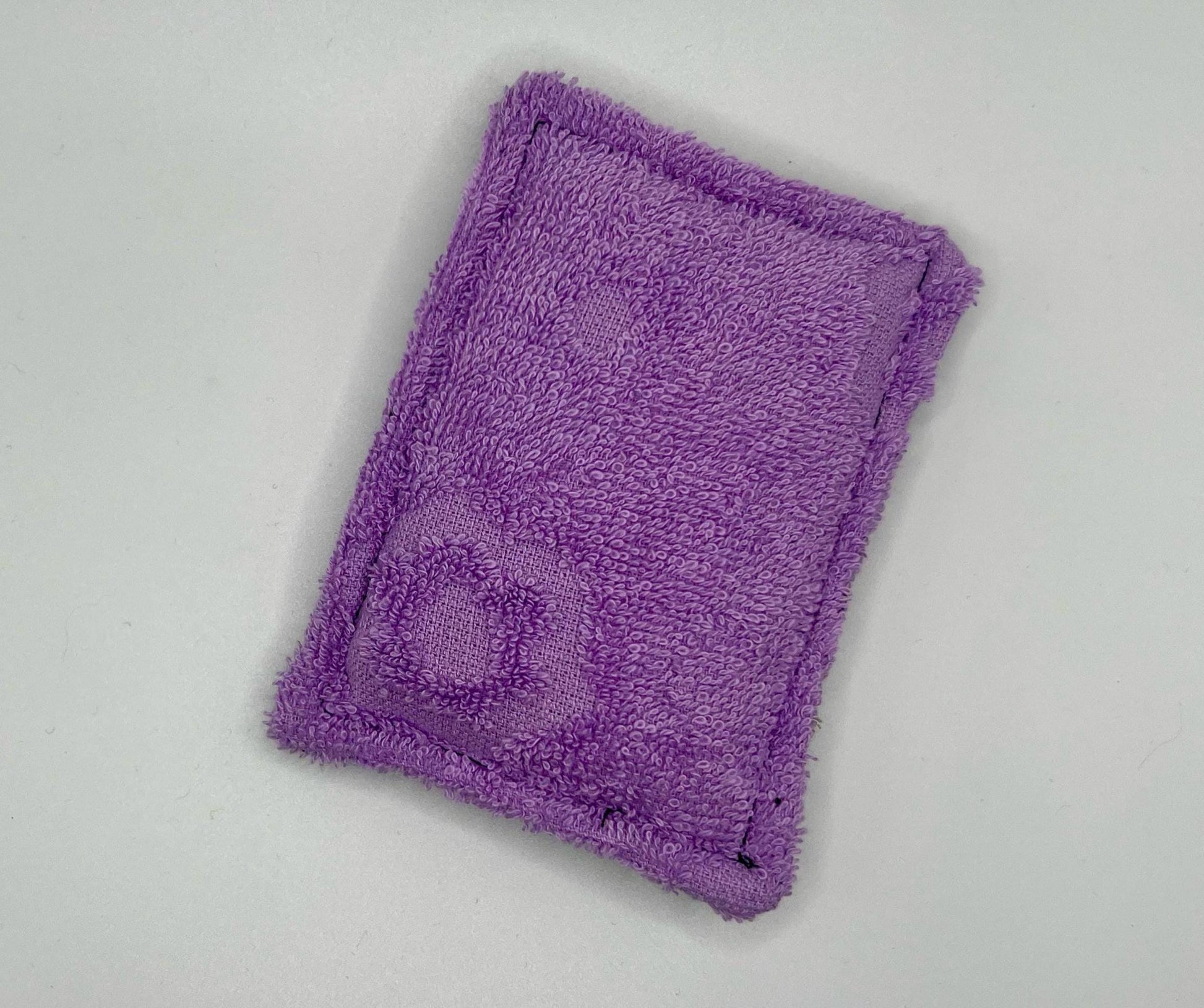 The top features a combo of cotton fabric for a soft touch and durable polyester mesh for gentle scrubbing power. Inside, an antimicrobial foam core helps resist mold and mildew buildup, keeping your sponge fresh longer. The back is finished with absorbent terry cloth, perfect for wiping surfaces clean.